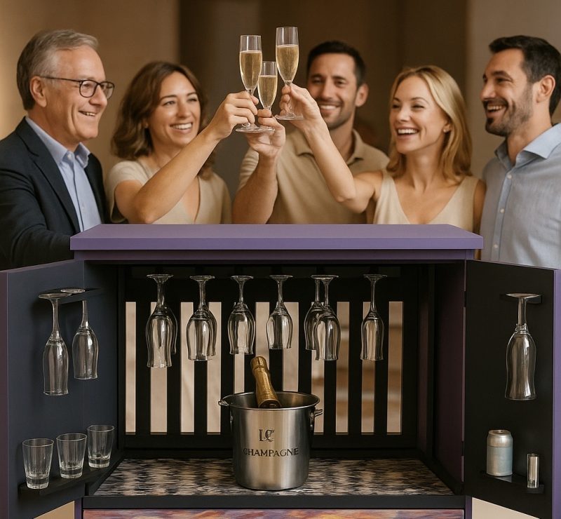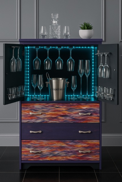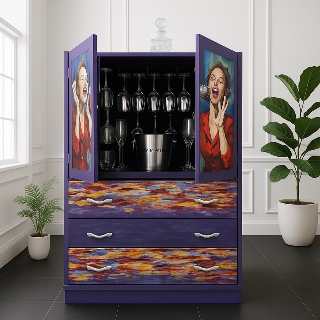 Wow – A truly striking, dramatic and artistic piece of highly functional furniture that merges ’50s glamour with modern flair. Perfect for those who love to entertain in style.